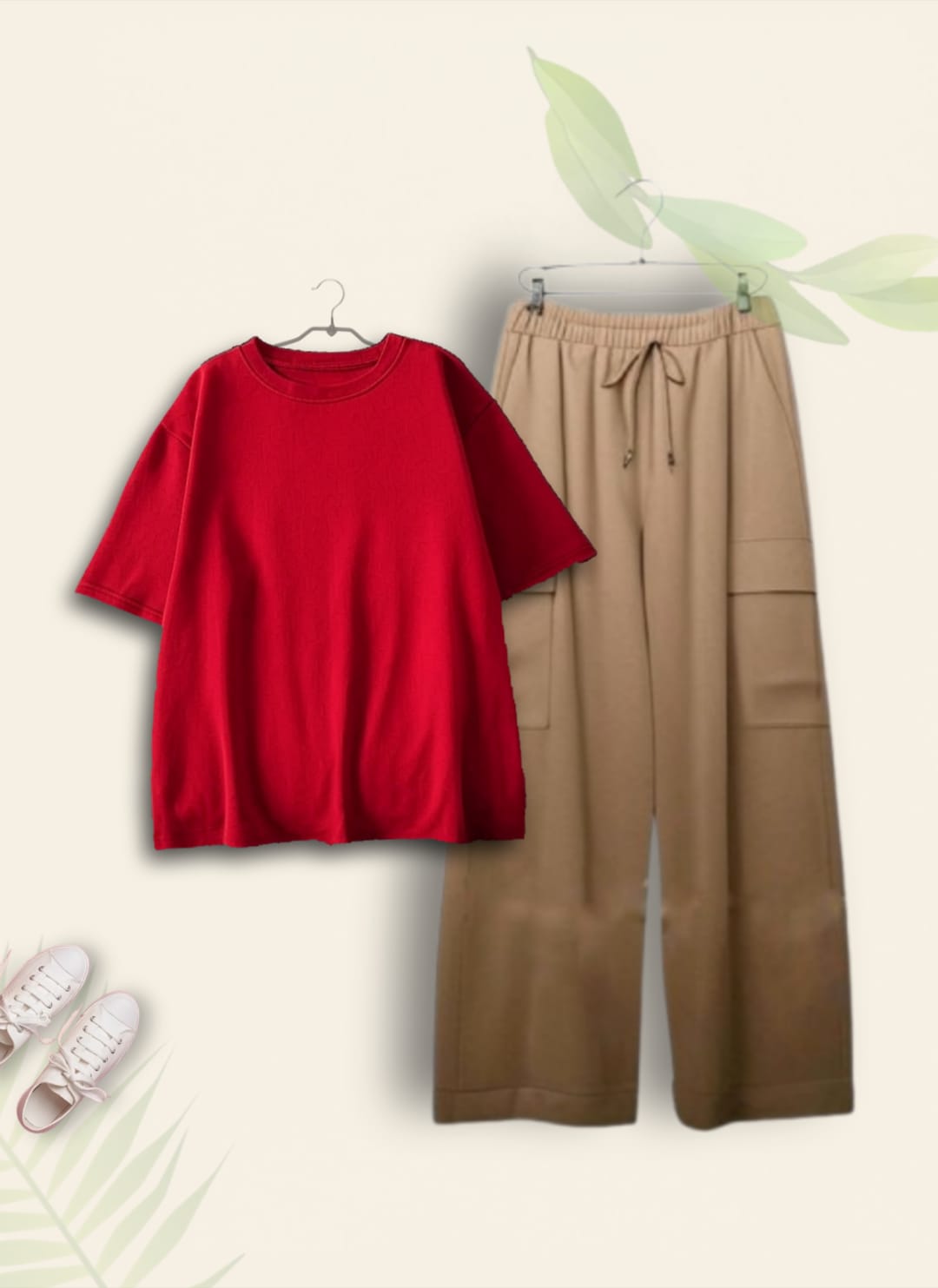 PLAIN RED TSHIRT WITH BEIGE CARGO TROUSER
