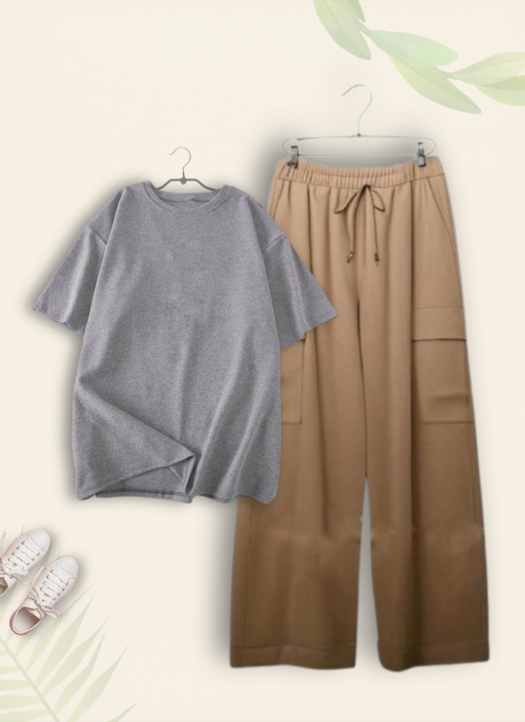 PLAIN GREY TSHIRT WITH BEIGE CARGO TROUSER